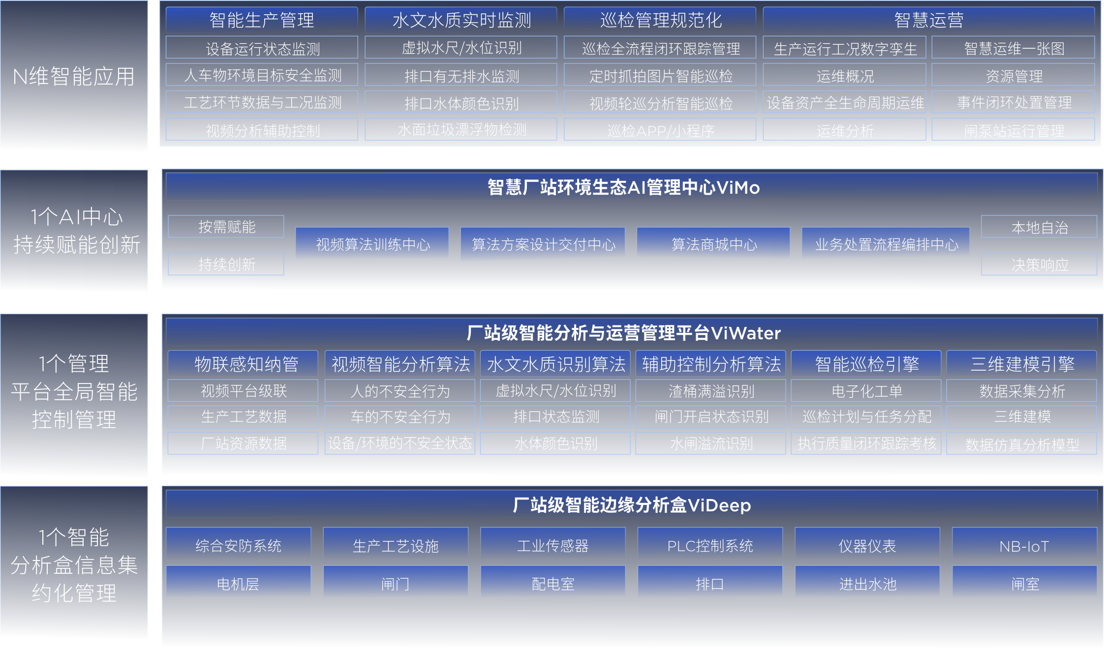 基于ViMo平台和工业控制领域的Know-how积累,结合厂站多场景需求,打磨出水文数据监测、水质可视化分析、视频增强、渣桶满溢、跑冒滴漏等水务场景算法。